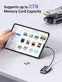 • Alta velocidad de 5 Gbps: el lector de tarjetas SD UGREEN USB C soporta transferencia de datos de hasta 5 Gbps y capacidad de tarjeta de memoria de hasta 2 TB, 10 veces más rápido que USB 2.0 (480 Mbps), lo que te permite transferir una película o archivos HD en segundos